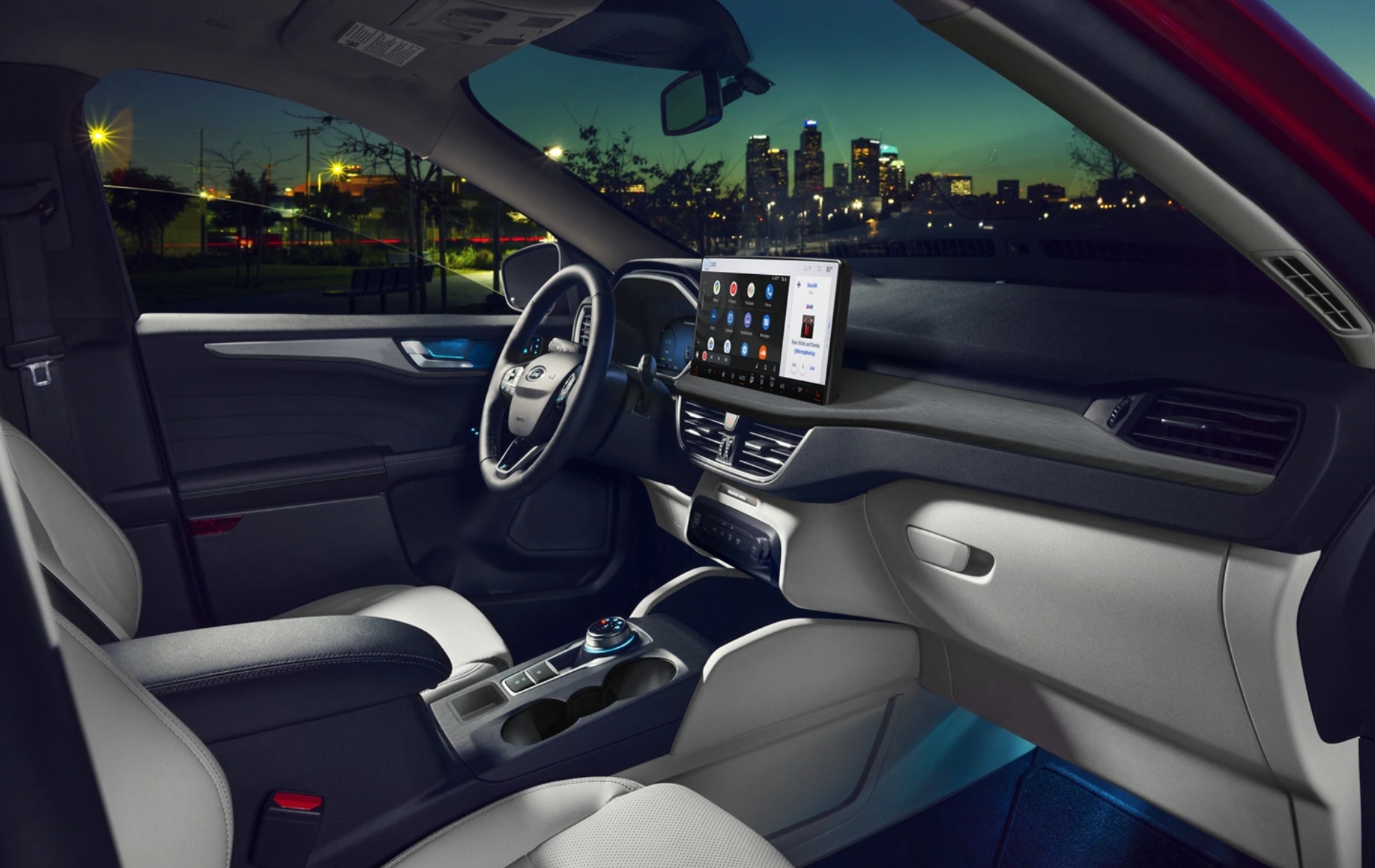 The exterior design of the Escape Plug-In Hybrid is sleek and modern, featuring aerodynamic lines and a bold grille that hints at its efficient performance. LED signature lighting and standard 18-inch and available 19-inch machined aluminum wheels add a refined touch. Inside, the spacious cabin accommodates up to five passengers comfortably, with high-quality materials and a configurable cargo area that ensures you can bring everything you need for the journey.