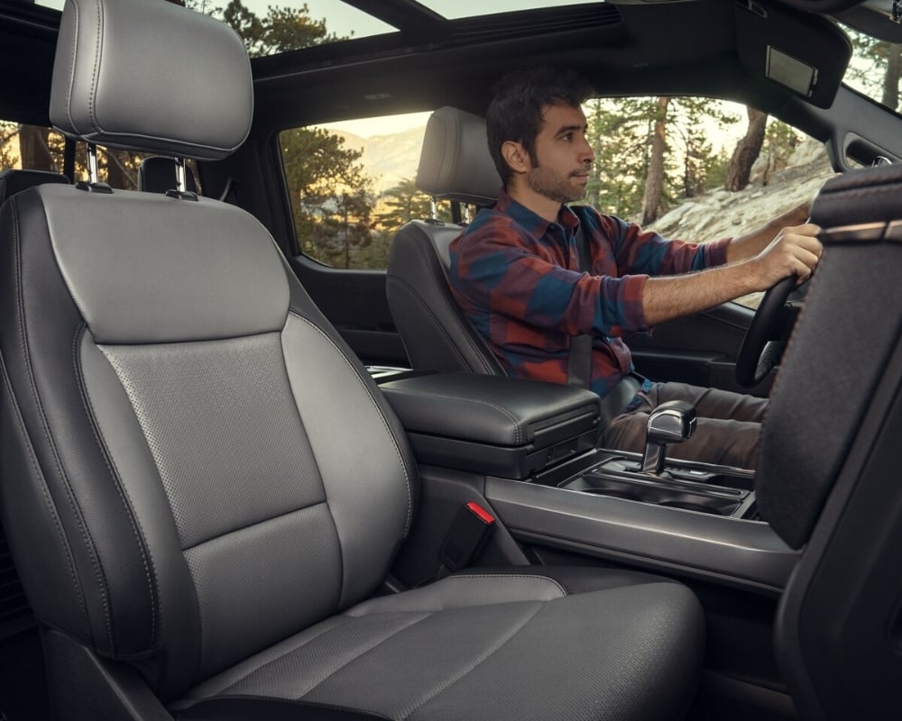 With an interior that upholds the timeless Ford design ethos characterized by clarity and ease of use, the Lightning offers plush leather seats, ample headspace, and legroom, accommodating up to five occupants with ease. Bolstered by a 5.5-foot cargo bed and an impressive towing capacity of 10,000 pounds, the Lightning assures abundant cargo space for all your hauling needs.