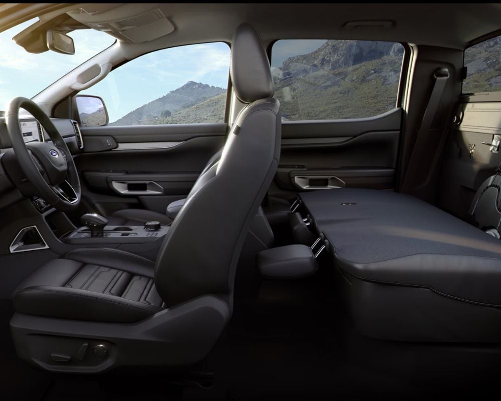 Inside, the Ranger mixes rugged utility with modern comforts. Depending on the equipment grade, you can enjoy a 10.1-inch or an expansive 12-inch infotainment touchscreen. The cabin also features improved storage solutions and extra room thanks to the wider build. New ergonomic seating and refined material selections elevate the interior to match its impressive exterior capabilities.