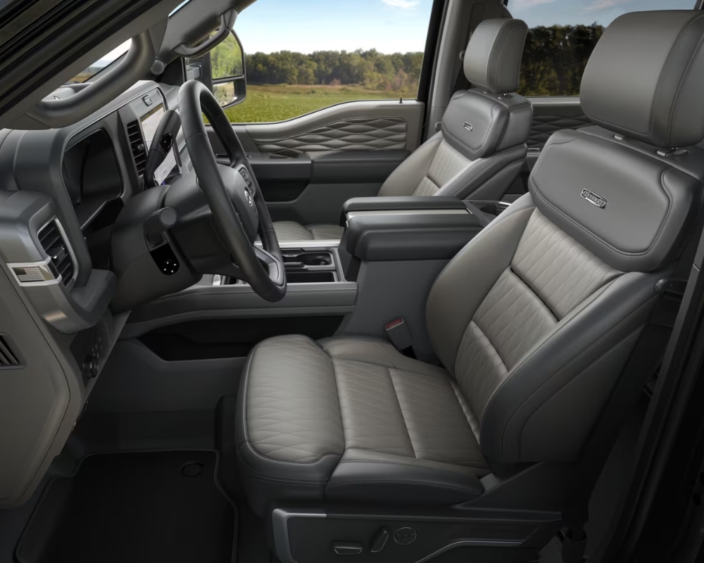 Step inside, and you’ll find a surprisingly refined cabin designed to support long days on the road or job site. Choose from a range of interior finishes—from durable cloth to premium leather—across Regular, SuperCab, and Crewcab configurations. Available features like a twin-panel moonroof, ventilated seats, and interior work surfaces take comfort and convenience to the next level.